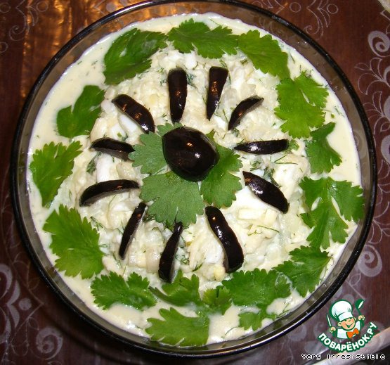 У салата получается очень интересный вкус, почти никто не понял из чего он, но все сказали что вкусно. Особенно понравился мужчинам, хотя ожидала, что будет наоборот. :lol: