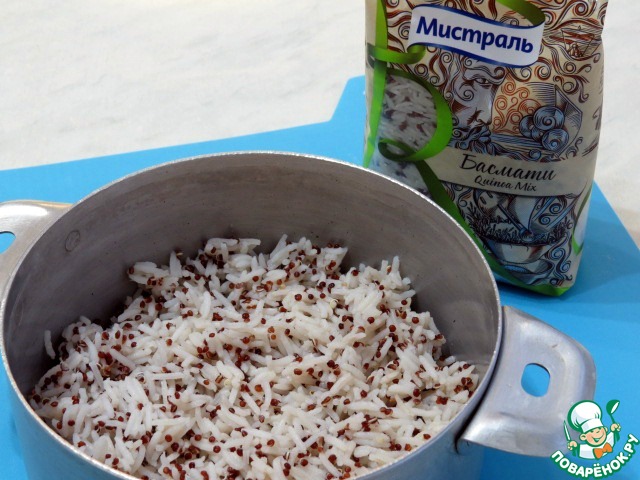 Берём смесь риса и киноа. Отвариваем как указано на упаковке и остужаем.