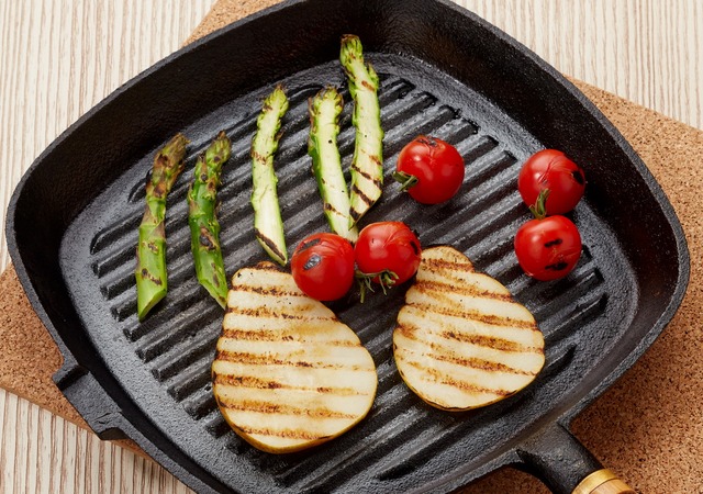 Грушу пожарить на гриль-сковороде без масла и выложить вокруг салатного микса.