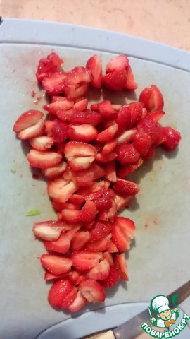 Клубнику, помыть, очистить от плодоножек, обсушить, порезать на четвертинки.