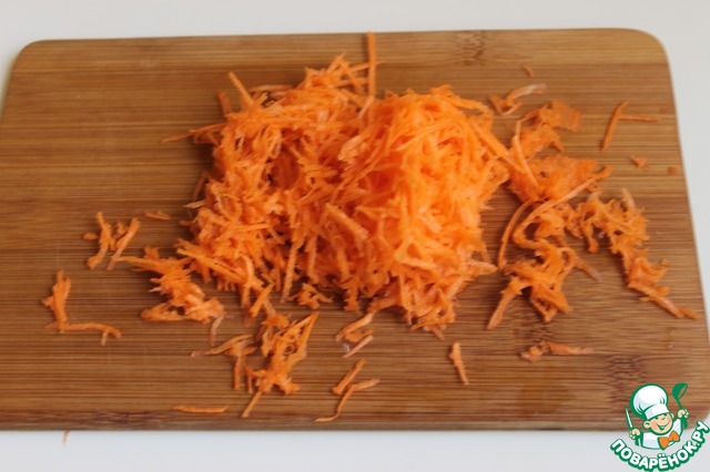 Пока сухарики сушатся, трем морковку. Оставляем ее так.
