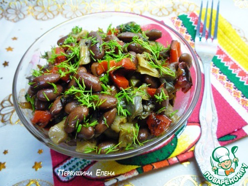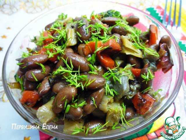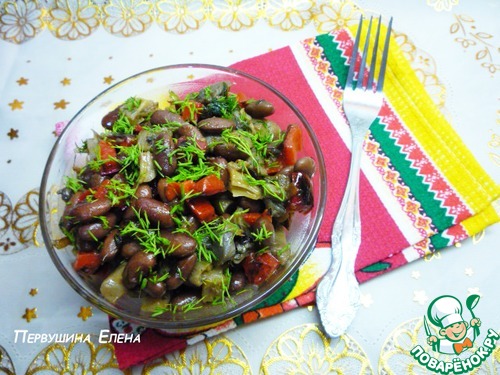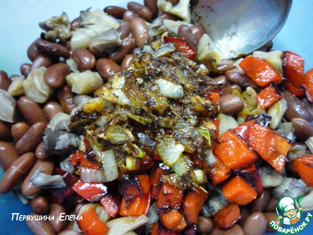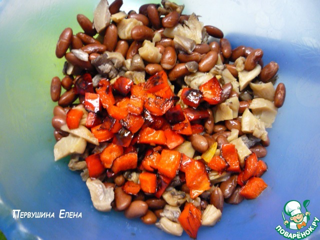 Теплый грибной салат с красной фасолью, печеным перцем и острой заправкой