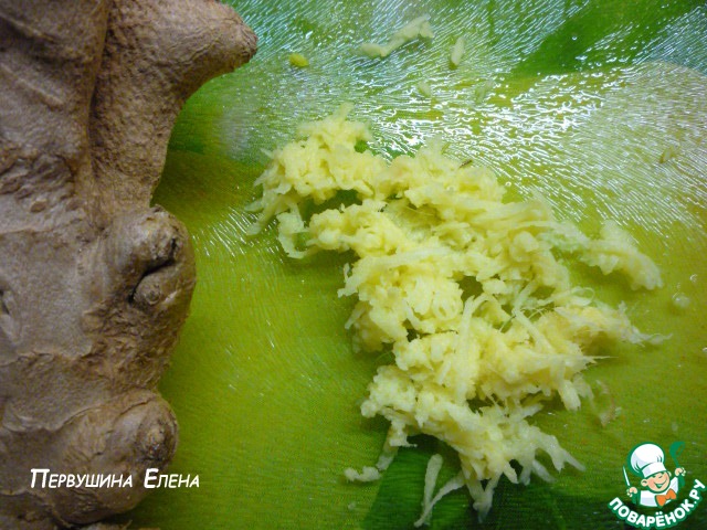 Имбирь трем на мелкой терке, отбираем "веточки".