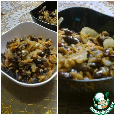 Когда фасоль готова приступаем к готовке. Пережариваем в не большом количестве масла тертую морковь ( без фанатизма) Пережаренную морковь слегка отжать от лишнего масла.
