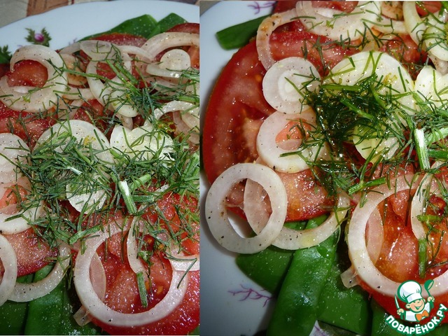 Салат из молодой стручковой фасоли с помидорами и мягким сыром