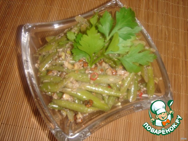 | Вкуснейшая маринованная зеленая фасоль с грецкими орешками. Это один из моих любимых вариантов приготовления стручковой фасоли. Любители остренького будут в восторге! |