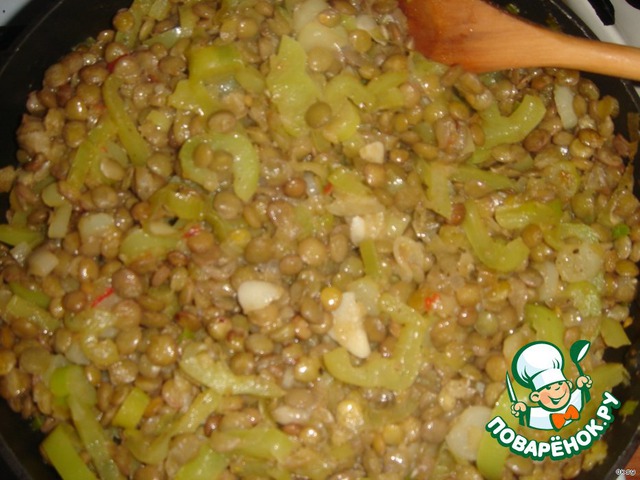 Чечевицу хорошо промыть, залить водой и дать постоять. Когда набухнет, еще раз промыть, сварить и слить лишнюю жидкость.