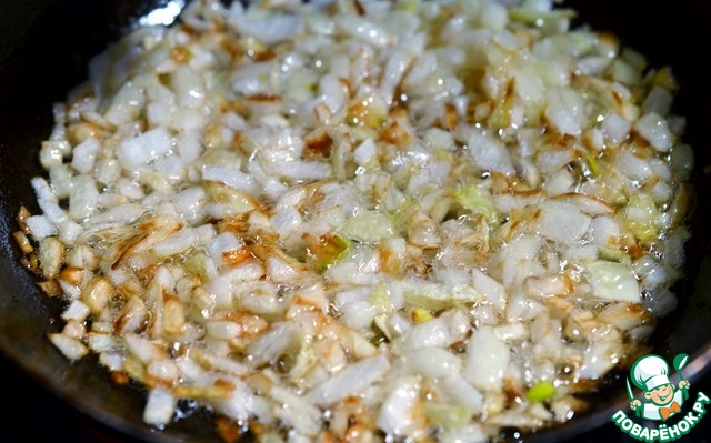 Хорошо обжарить лук на подсолнечном масле.