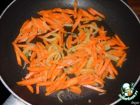 Лук и морковь обжарить с 1 ст.л. оливкового масла до полуготовности. Надо, чтобы морковь немного похрустывала.