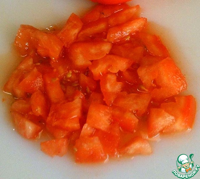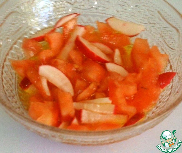 Из редиски и помидор готовим соус. Нарезать редиску брусочками.