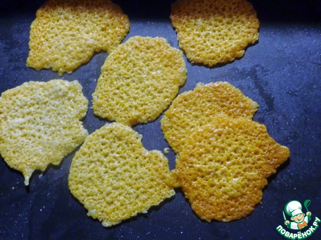 Уложить на противень небольшими порциями. Отправить на 3-5 минут в духовку, разогретую до 220 градусов, чтобы получились чипсы.