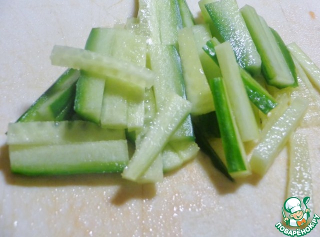 | Очень лёгкий и вкусный салат, украшенный хрустящими сырными чипсами, с пикантной заправкой. Готовится просто и быстро. |