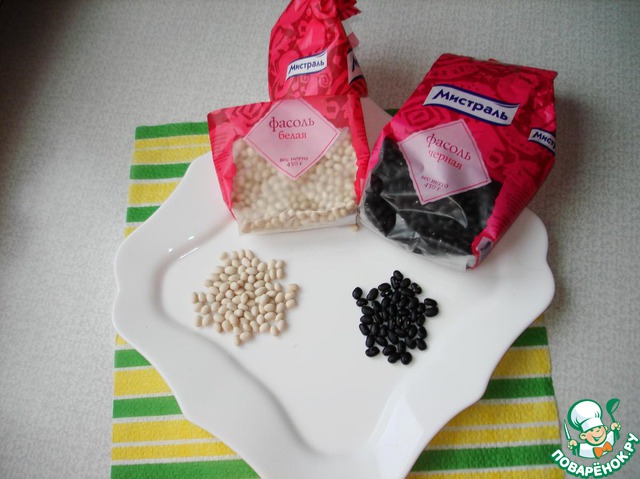 Белую и черную фасоль замачиваем и варим по отдельности.