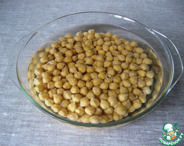Через 12 часов сливаем воду, в которой замачивался нут, и приступаем к приготовлению блюда.