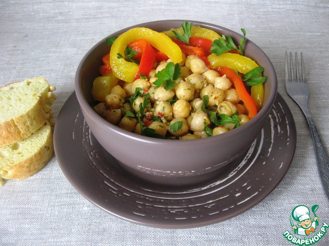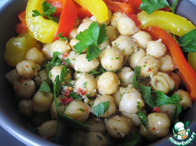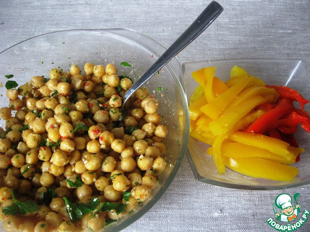Выкладываем перец сверху на нут, посыпаем петрушкой…