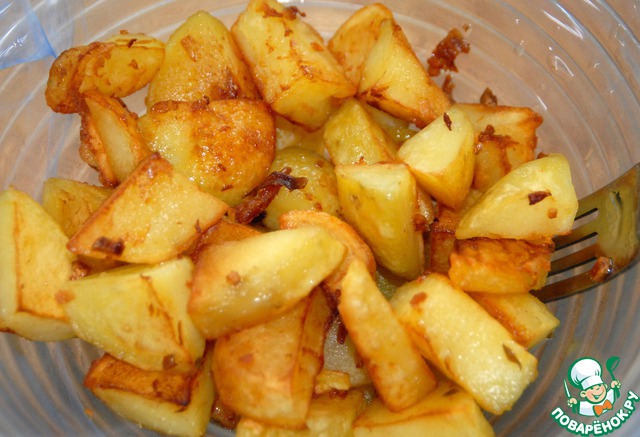 Ломтики картофеля обжариваем на сильно разогретом масле до красивой золотистой корочки.