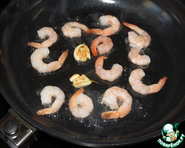 Добавить креветки и обжарить с каждой стороны по 1-2 минутки.