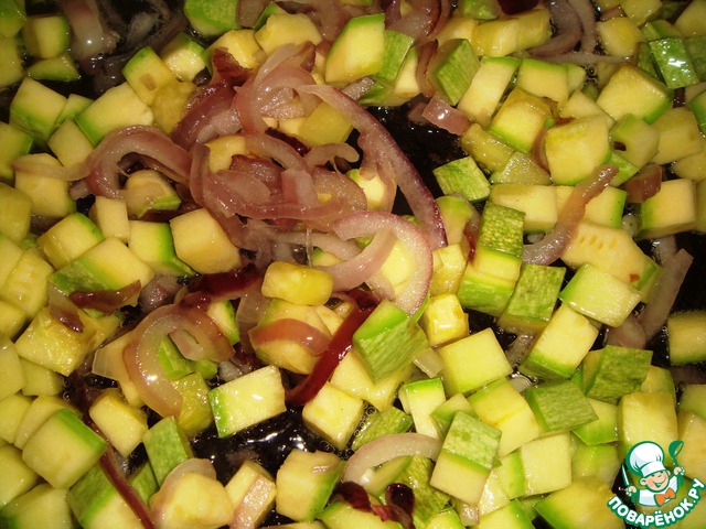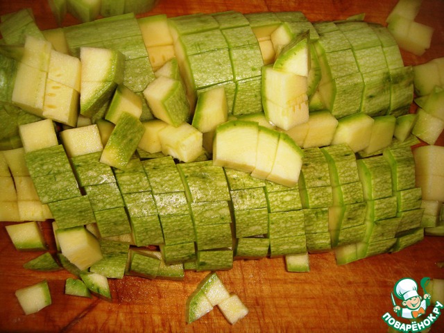 Молодой кабачок хорошо помыть, нарезать кубиками со стороной 1 см