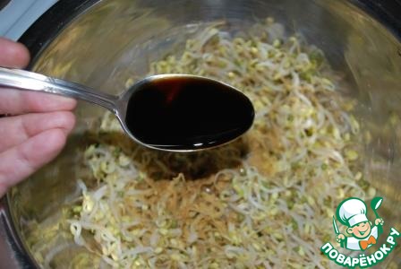 Проростки тщательно промыть. В магазинных проростках шелухи от маша практически не встречается. Но у меня же проростки «домашнего изготовления», поэтому зеленая шелуха присутствует в изобилии. В дальнейшем мы от нее избавимся. Но в принципе ее можно и оставить.