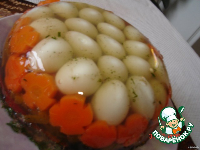 Всё заливаем бульоном с желатином и ставим в холодильникк для застывания.