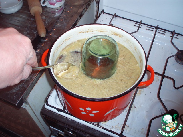 На крышку ставим банку вверх дном, а на нее кастрюлю с водой и в холодное место (подвал или еще куда нить).