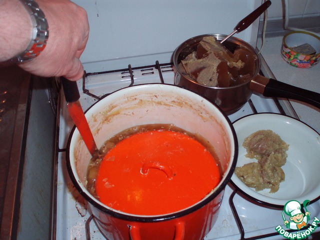 | В процессе приготовления этого блюда жир, который выделился при варке, можно отделить. В результате получается не очень жирный продукт. |