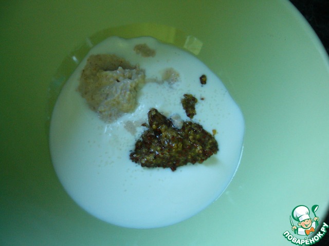 В отдельную миску положить сметану, горчицу, хрен, соль по вкусу