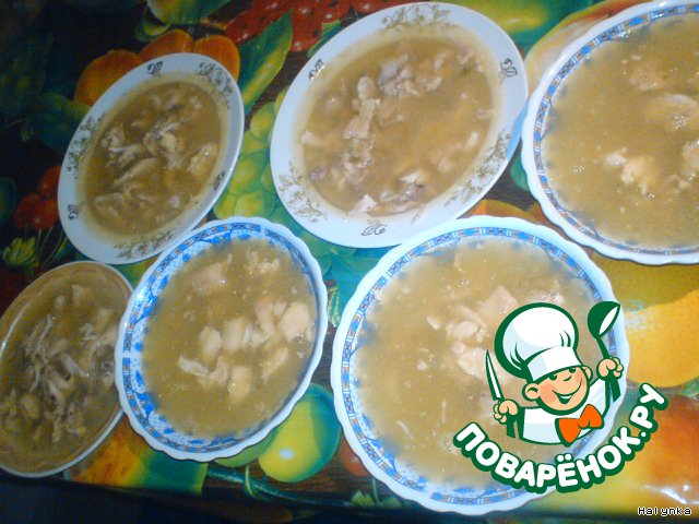 Мяско заливаем бульоном, из кастрюльки и ставим на холод на ночь. Это у меня столько вышло из 5 хвостиков (1 кг.)