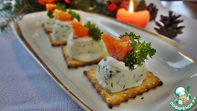 Получившиеся маленькие террины из рикотты поставить на крекеры.