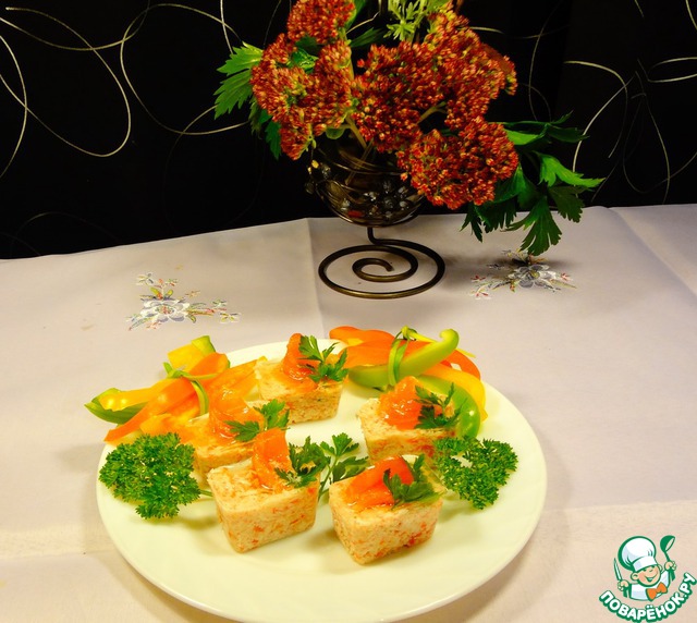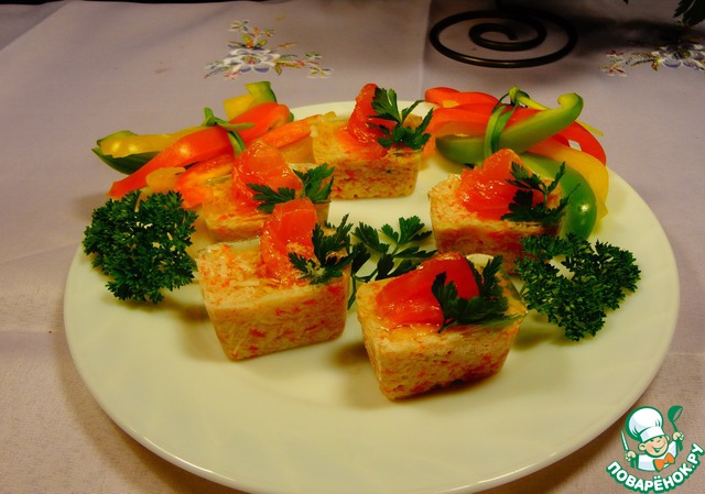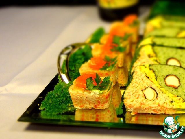 Вот так может выглядеть эта закуска на банкетном блюде.
