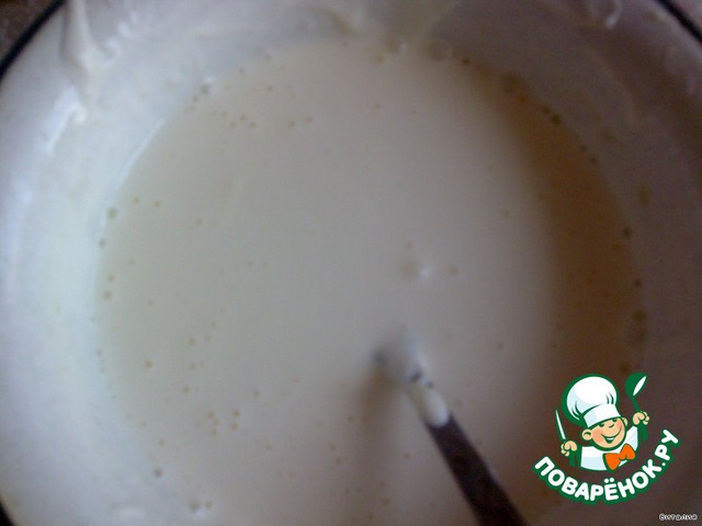 Желатин залить холодной кипяченой водой и оставить на 1 час