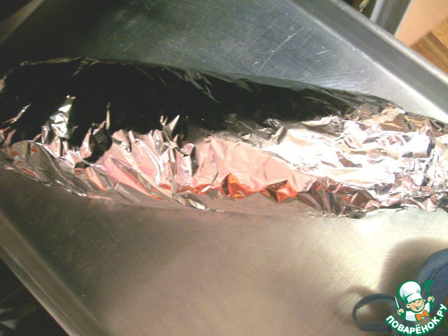 Плотно заворачиваем и отправляем в духовку, разогретую до 200 градусов, примерно на час.