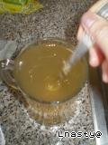 В горячем бульоне разводим желатин, когда остынет, заливаем рыбку