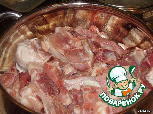 | Ну у меня просто остались косточки от куриных рулетиков и еще свиных костей кг был, вот и решила попробовать сварить.... |