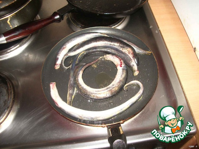 Миноги обжариваются и заливаются горячим маринадом. Через пару дней маринад превращается в желе и блюдо готово.