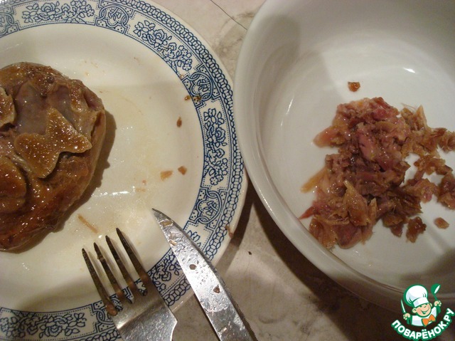 Достаём готовые косточки и отделяем от них мясо (мясцо измельчаем)