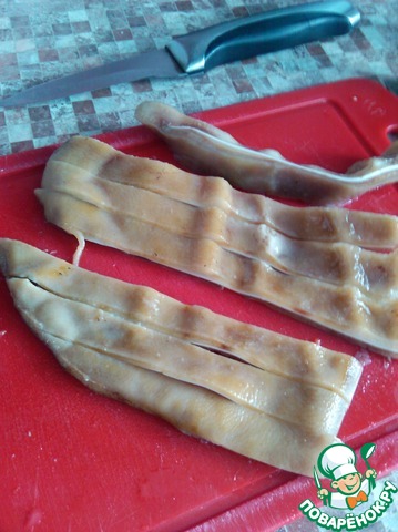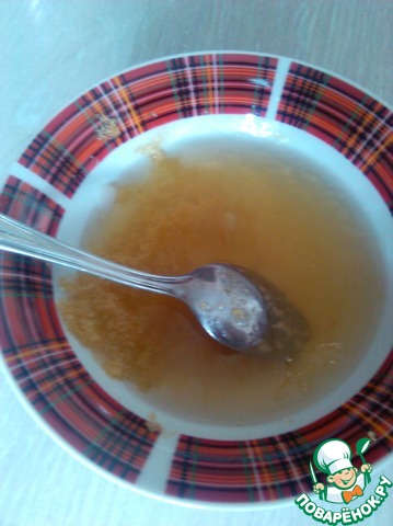 Желатин замачиваем в бульоне от ушей и подогреваем до растворения
