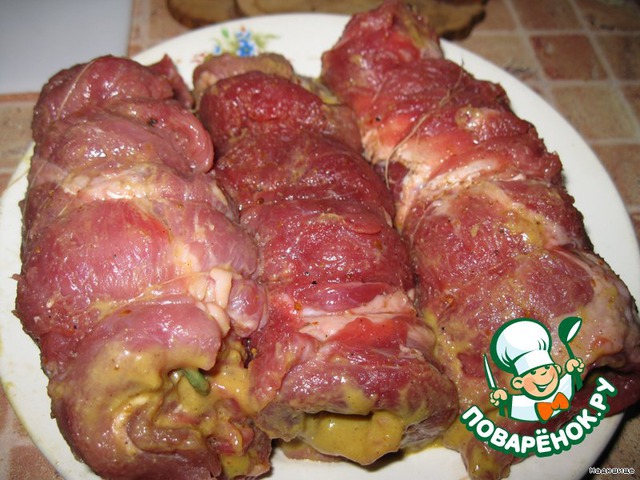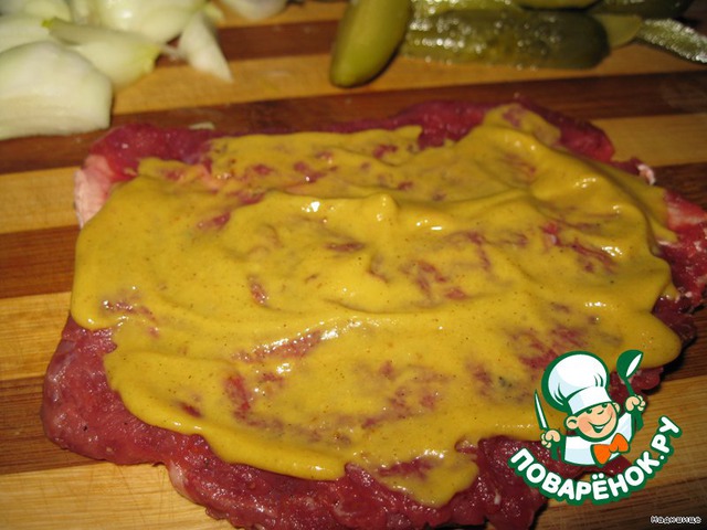 смазываем мясо горчицей