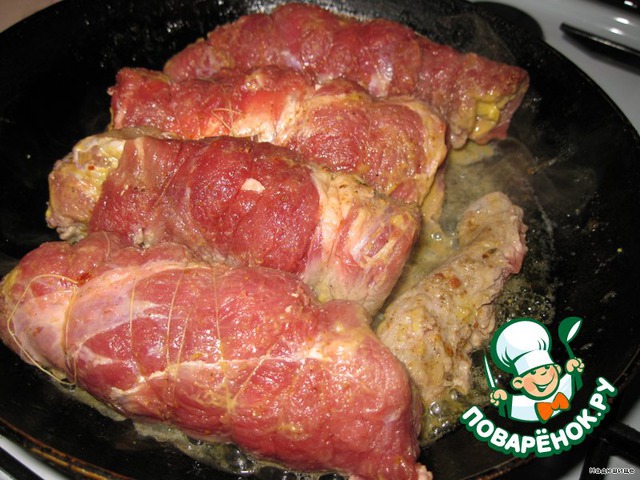 | Сочные, вкусные рулеты с начинкой. Очень вкусное блюдо. |