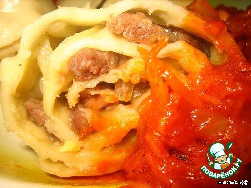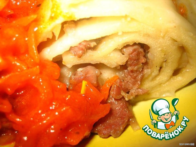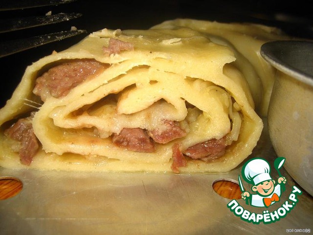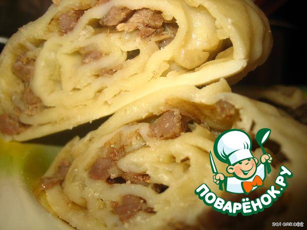 | я очень мало помогала, мой мужчина первый раз в жизни готовил)))Делал он это ещe на 8 марта)))Я была в восторге)) тесто с мяском я ем в любом виде))) |