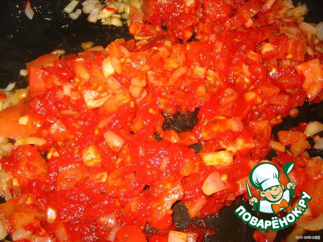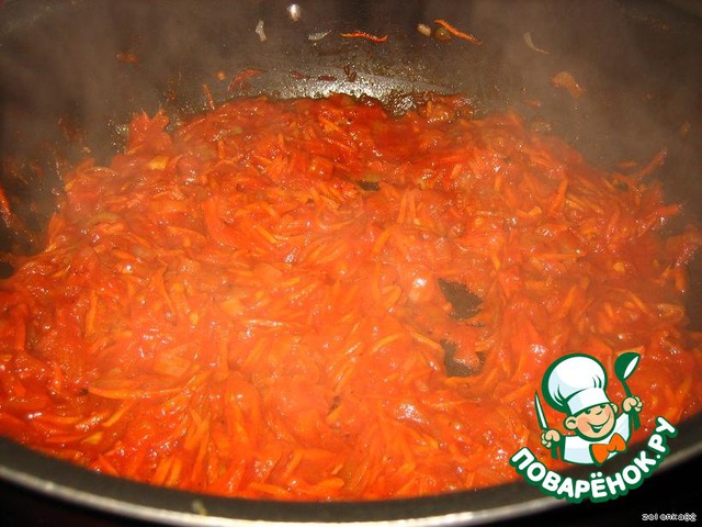 готовим густой соус, обжариваем лук, морковь, помидоры и томатной пасты чуток))