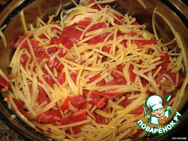 Трем картофель, я на терке для корейской (так красивше)