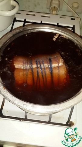 Готовый рулет оставить в рассоле при комнатной температуре на 12 часов. В моем случае он был готов как раз утром.