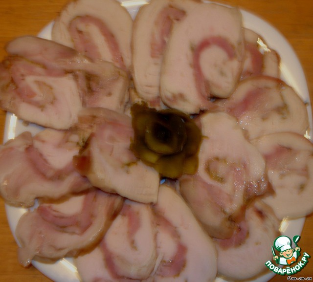 | Часто готовим такой рулетик к праздникам с целью разнообразить мясную нарезку. Похожие рецепты есть на сайте, но точно такого с подробным описанием не нашла. Может кому пригодится... |