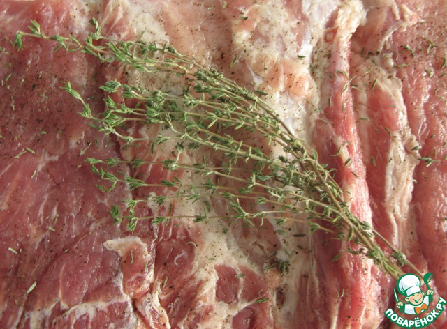 4. Мясо посолить, поперчить и посыпать тимьяном.