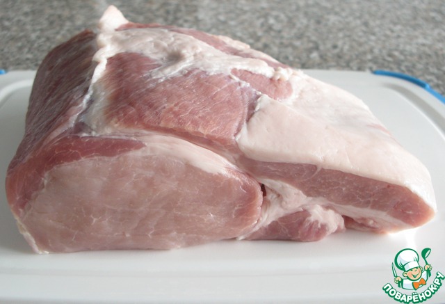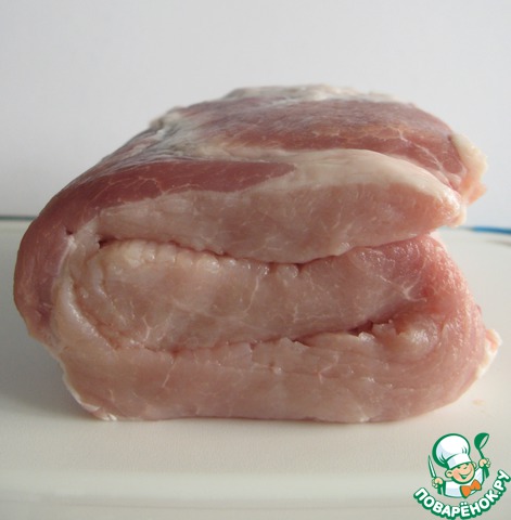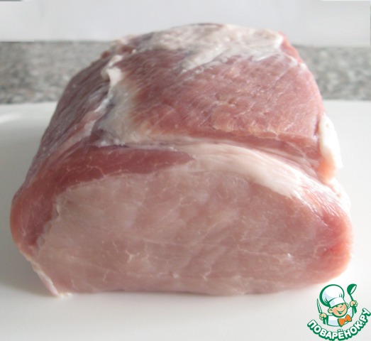 1. Я взяла свиную корейку, срезала часть мяса и оставила более подходящий для рулета кусочек весом 1 кг.