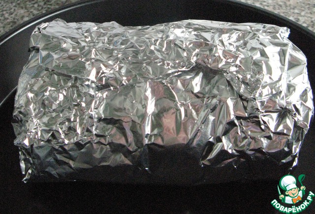 8. Завернуть рулет в фольгу и поместить в форму для запекания.