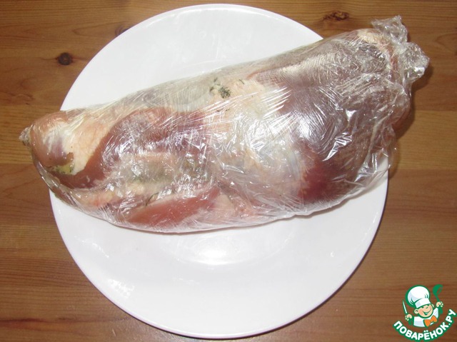 Сворачиваем в рулет и заворачиваем в пищевую пленку. Убираем в холодильник на 12 часов (+/- пол дня допустимо).