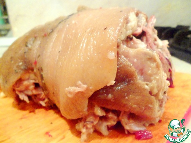 Рулька свиная фаршированная клюквенно-луковым джемом с имбирем