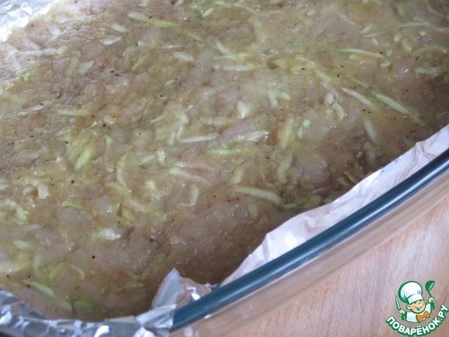 Сверху выложим фарш кабачково-куриный.